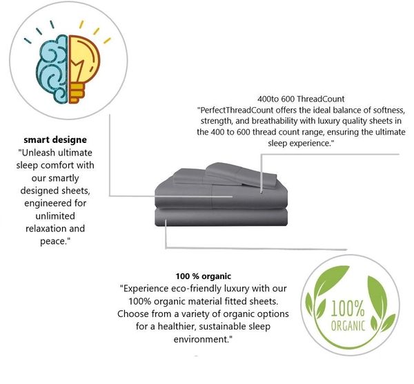 1. Enhanced Sleep Comfort Premium Materials: Crafted with high-quality, breathable fabrics that regulate temperature for a restful night's sleep. Hypoallergenic Properties: Designed to reduce allergens, providing a cleaner and healthier sleep environment for sensitive individuals. Luxurious Feel: The soft and smooth textures enhance relaxation and elevate the overall sleep experience.